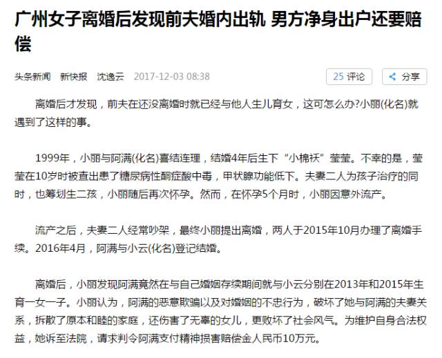 广州市白云区人民法院认为,夫妻应当互相忠诚,互相尊重。阿满在与小丽婚姻存续期间与其他女性生儿育女,违反了夫妻应当互相忠诚的法定义务,影响到家庭的稳定与和睦,破坏夫妻感情,导致二人的婚姻关系破裂。阿满在与小丽婚姻关系存续期间存在过错,其行为对小丽造成了伤害,应当承担损害赔偿责任。依法判决阿满赔偿小丽精神损害抚慰金3万元。